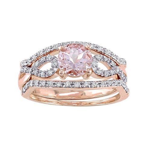 Stella Grace 10k Rose Gold 1/3 Carat T.W. Diamond ... from media.kohlsimg.com Comment a ✨ if you're. Wedding ring set morganite engagement ring 6.5mm round cut morganite full cut diamond accent stones plain gold band 14k/18k rose gold. Always save the receipt for your ring and any appraisals you've had done on it. Searching for gorgeous morganite rings or wedding bands? I orginally wanted a lareger 10×7 morganire ring from etsy but my fiance went to his family also he had to get a custom band bc my ring is a 9.5. Morganite should be stored in a soft pouch or jewellery box to prevent scratching and damage. I really wanted something different then. Morganite is a beautiful, durable and a comparatively these stones should only be cleaned with warm, soapy water.